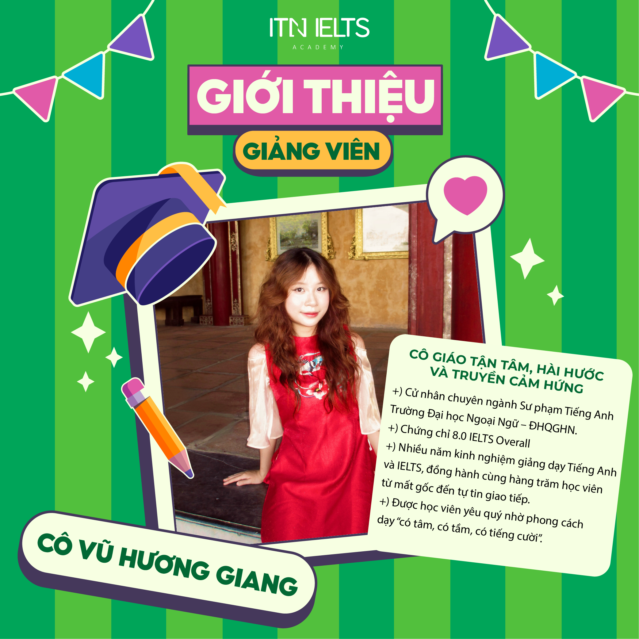 Cô Vũ Hương Giang không chỉ là một giáo viên Tiếng Anh tâm huyết, mà còn là người truyền cảm hứng mạnh mẽ cho học...
